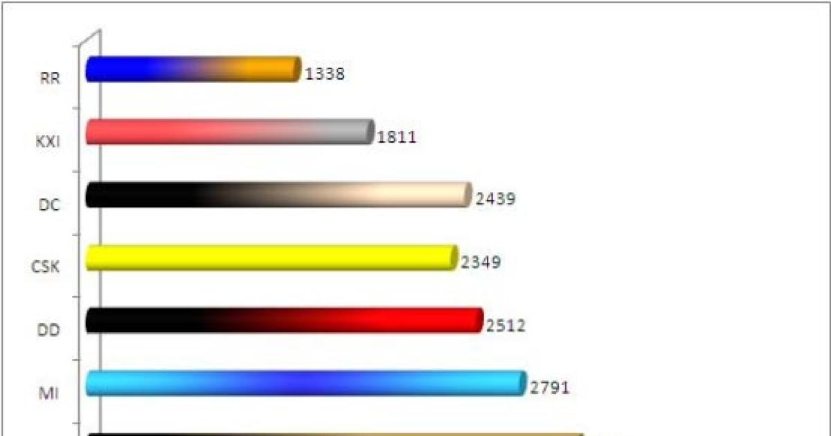 Chennai Super Kings (PVI: 2349) have very steady player performances, although they are missing Matthew Hayden and Michael Hussey two top batsmen who walked away with an incredibly low PVI of just about 500. M S Dhoni and Jacob Oram have PVI's in the range of 3000 because Dhoni is so frightfully expensive, and Oram hardly got the opportunity to contribute with the bat.