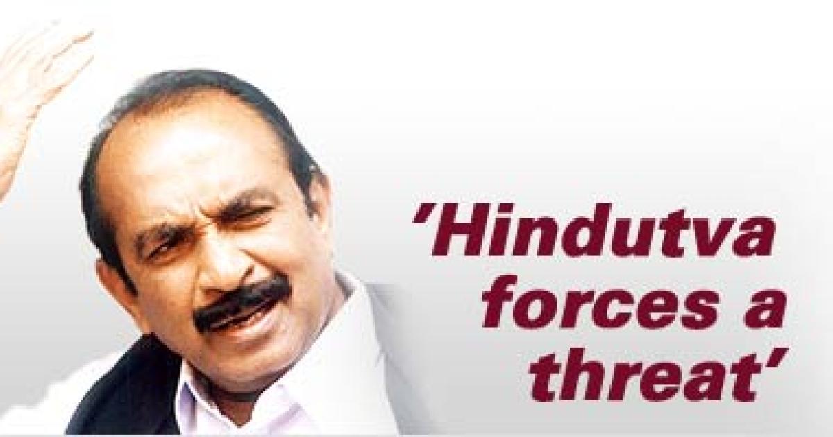 Today, there is a threat to the secular fabric of India, which is the hallmark of our democracy. Religious fundamentalist forces are raising their threats. Of course, we were a part of the NDA. The MDMK was one of the signatories to the NDA's National Agenda, which was a total commitment to secularism and protection of minorities. But for the past two years, Hindutva forces, which were lying low, have sharpened their arsenal to make India a theocratic state. I have all respect and affection for Vajpayee but he has become vulnerable in the hands of the Sangh Parivar.