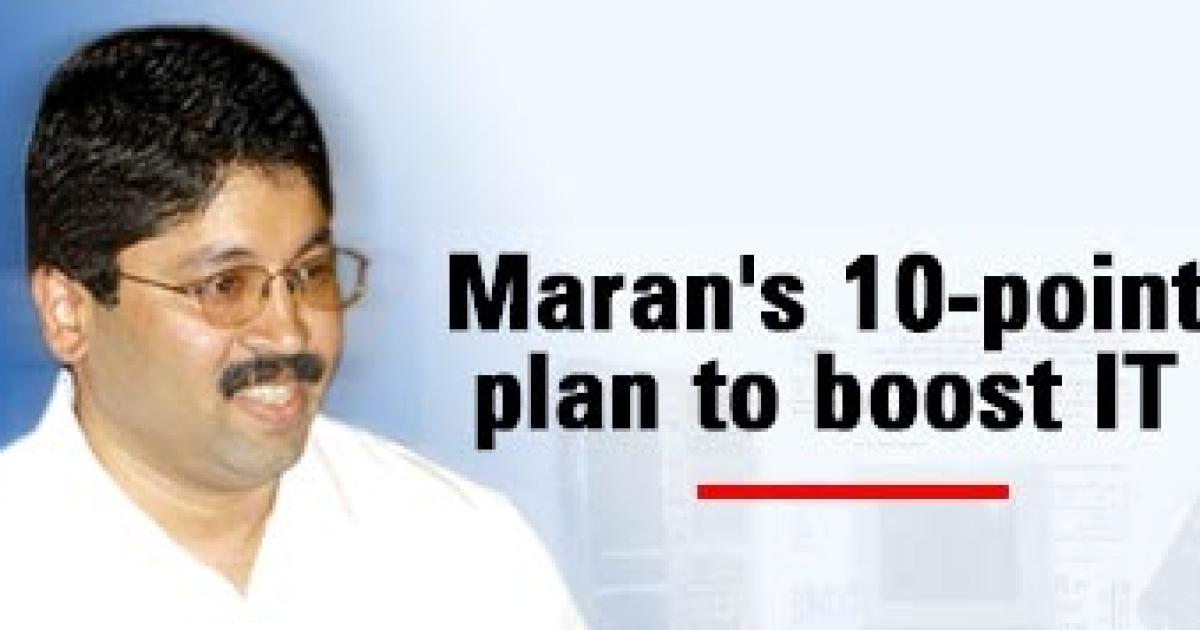 Dayanidhi Maran, Union Minister for Communications & IT, announced a 10-point agenda to boost information technology and telecommunications sectors on Wednesday. Apart from revamping the telecom policy, his dream is to make India a 'great IT nation.'