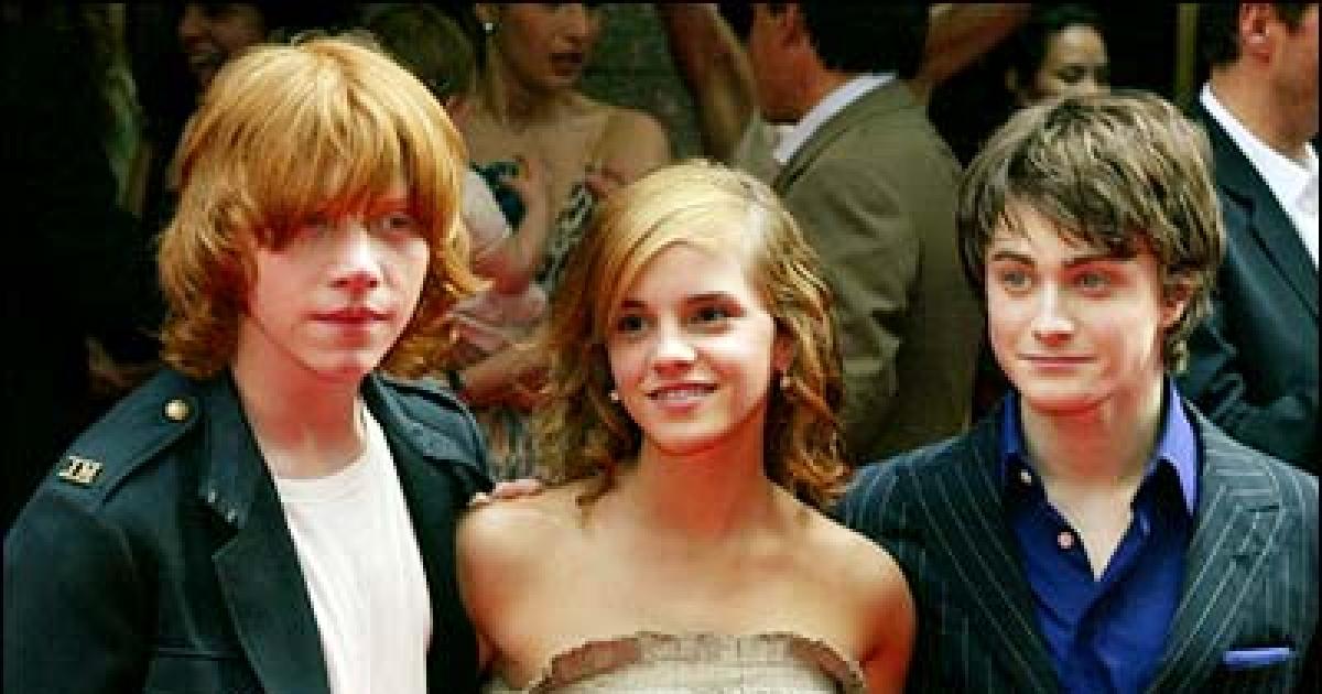 In the picture: A stunning Emma Watson is flanked by Rupert Grint and Daniel Radcliffe.