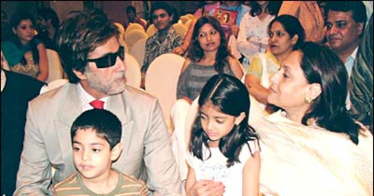 Not surprisingly, Big B turned up for the muhurat with his family -- wife Jaya and grandchildren Agastya and Navyanaveli -- in tow!