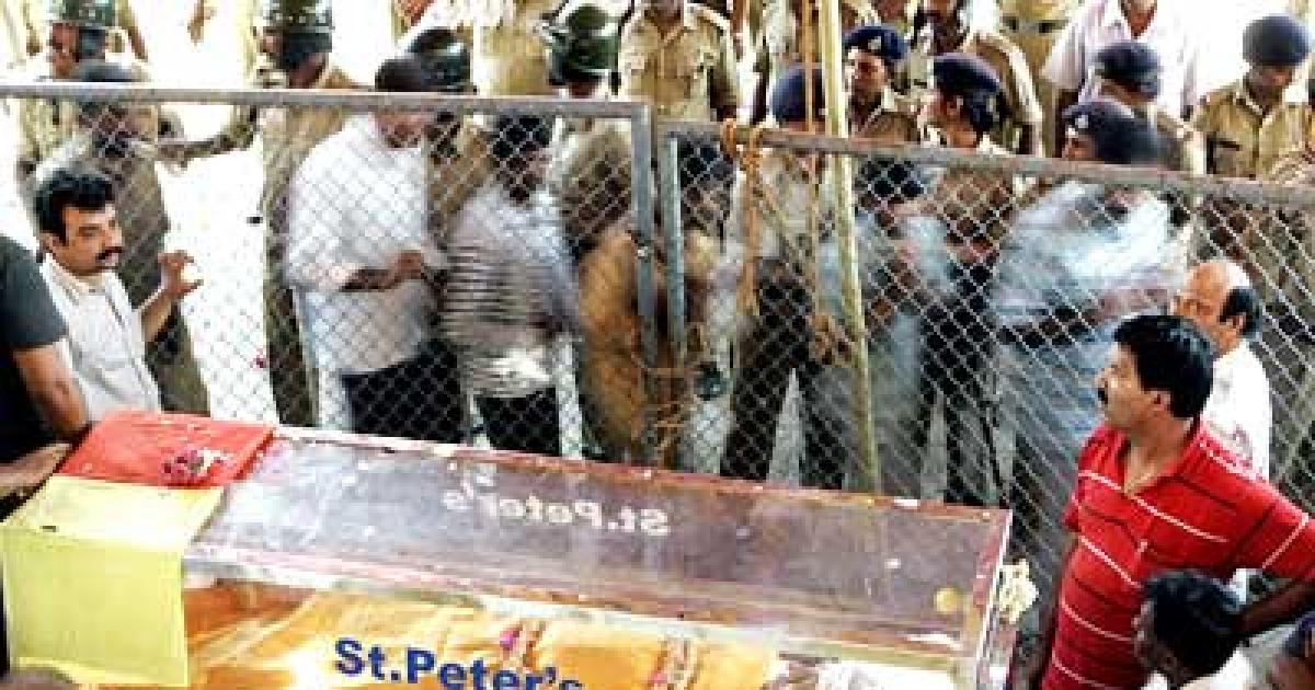 In an atmosphere of sombriety, the fans, most sobbing uncontrollably, came in a steady stream and bowed in respect in front of the body which lay in state at the Kanteerava Stadium in the heart of Bangalore since Wednesday night.
