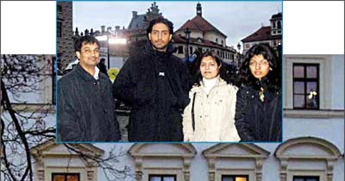 Inset: Abhishek poses with reader Parul Shah's aunt Vandana, uncle Vijay Singh, and their daughter Isha.