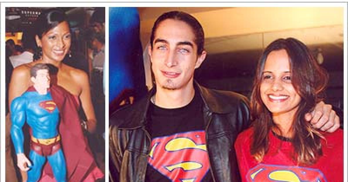 While Adam Bedi and finacee Nisha Harale wore T-shirts (left), model Carol Gracias (extreme left) posed with a pastic model of the superhero.