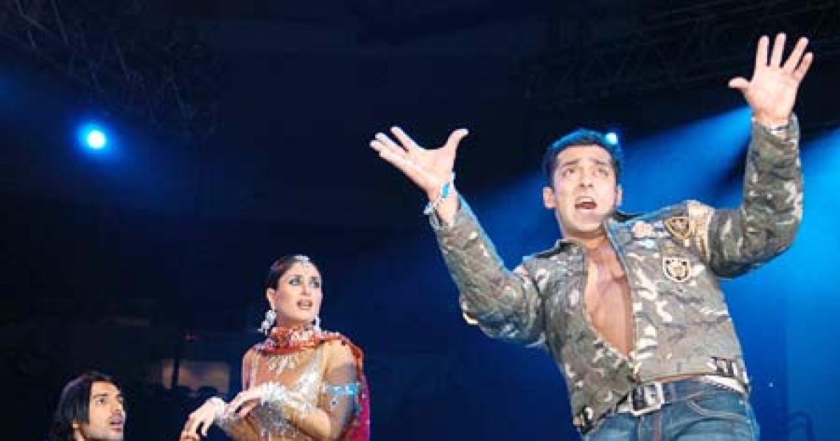 The Rockstars Live Concert at the Nassau Coliseum in Long Island, New York state, saw Sallu with colleagues John Abraham, Kareena Kapoor (pictured, to Salman's left), Mallika Sherawat, Zayed Khan, Shahid Kapoor and Esha Deol.