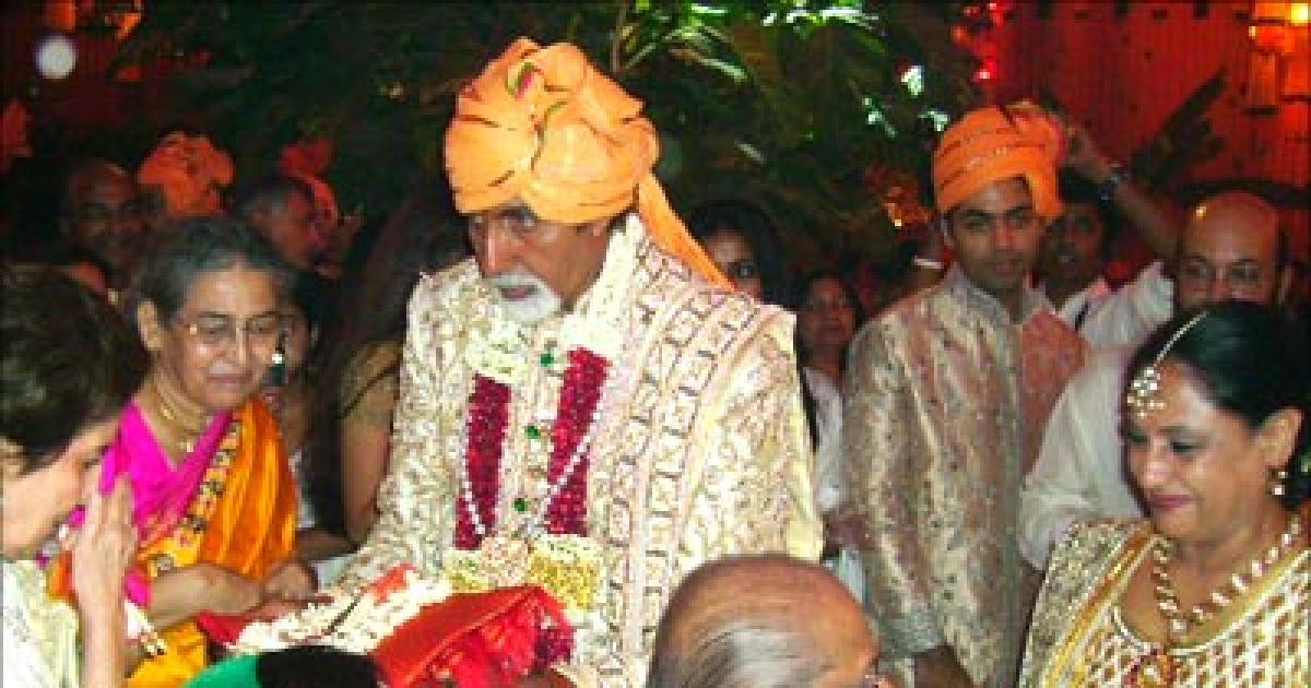 Amitabh and Jaya Bachchan greet guests Shammi Kapoor and his wife Neela Devi.
