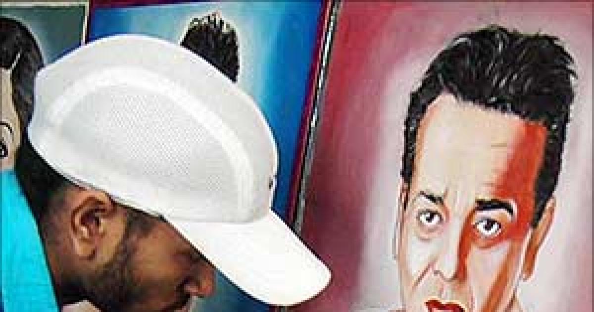 In his support, painter Jagjot Singh Rubal adds the finishing touches to his portrait of the actor, in Amritsar.