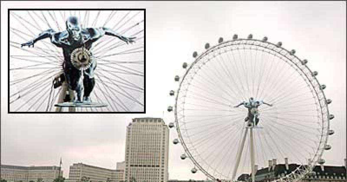 The Surfer -- coming to theatres worldwide this Friday in Fantastic Four: Rise Of The Silver Surfer -- takes point of pride, right in the centre of the London eye.