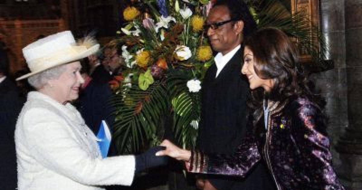 Shilpa -- reportedly wearing an intricate purple velvet Tarun Tahiliani sherwani -- curtseyed before the Queen, and then almost slipped in her high heels. Apparently Prince Philip smilingly told her to be careful about the shoes, averting the fall.
