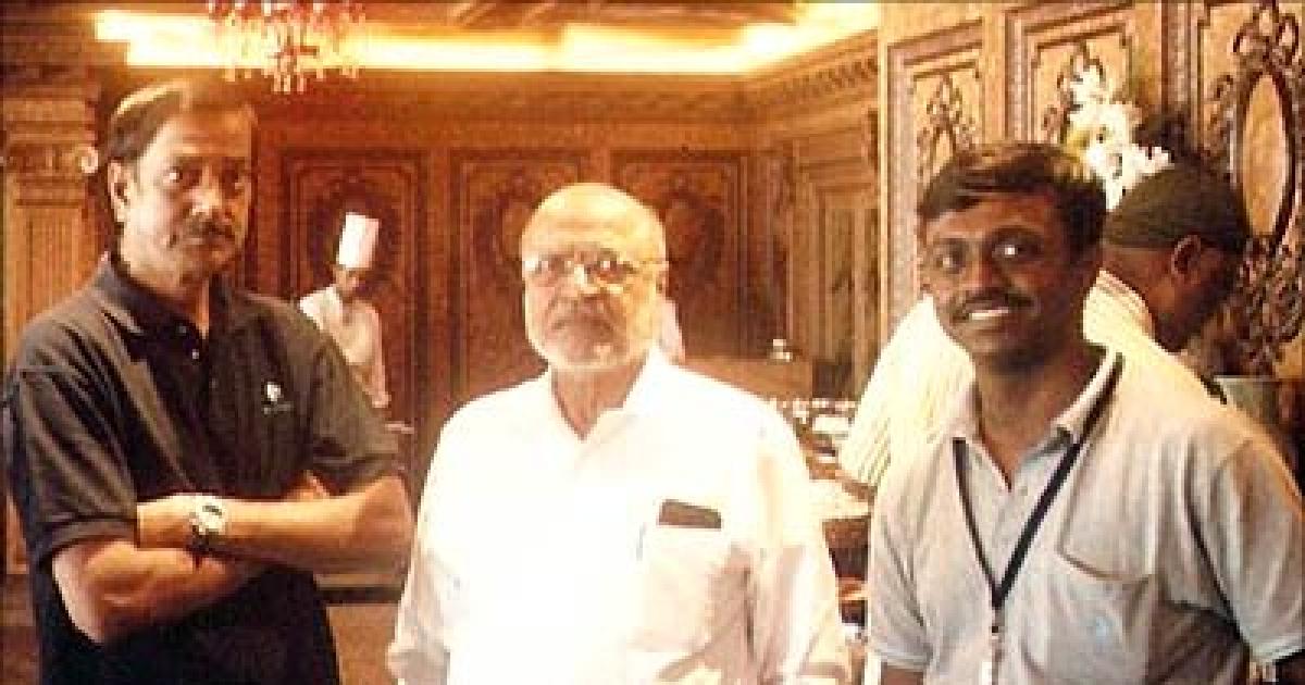 In the picture, Benegal is flanked by Anil and his colleague, Narasimhan.