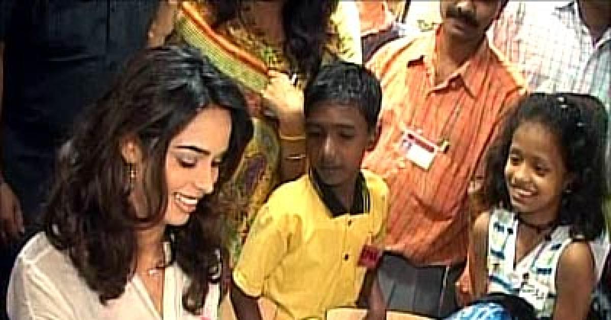 After the popular Maiya Maiya number from Mani Ratnam's Guru, Mallika Sherawat seems to have disappeared from the public eye.But recently, she did find time to meet children suffering from cancer on the occasion of Rose Day. She was there at an art and crafts shop to cheer them and spend some time with them.