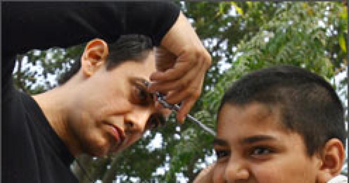 Aamir Khan adopted a new way to promote his film, Ghajini. He put up a pair of scissors and gave some fans a haircut, similar to his own Ghajini cut.