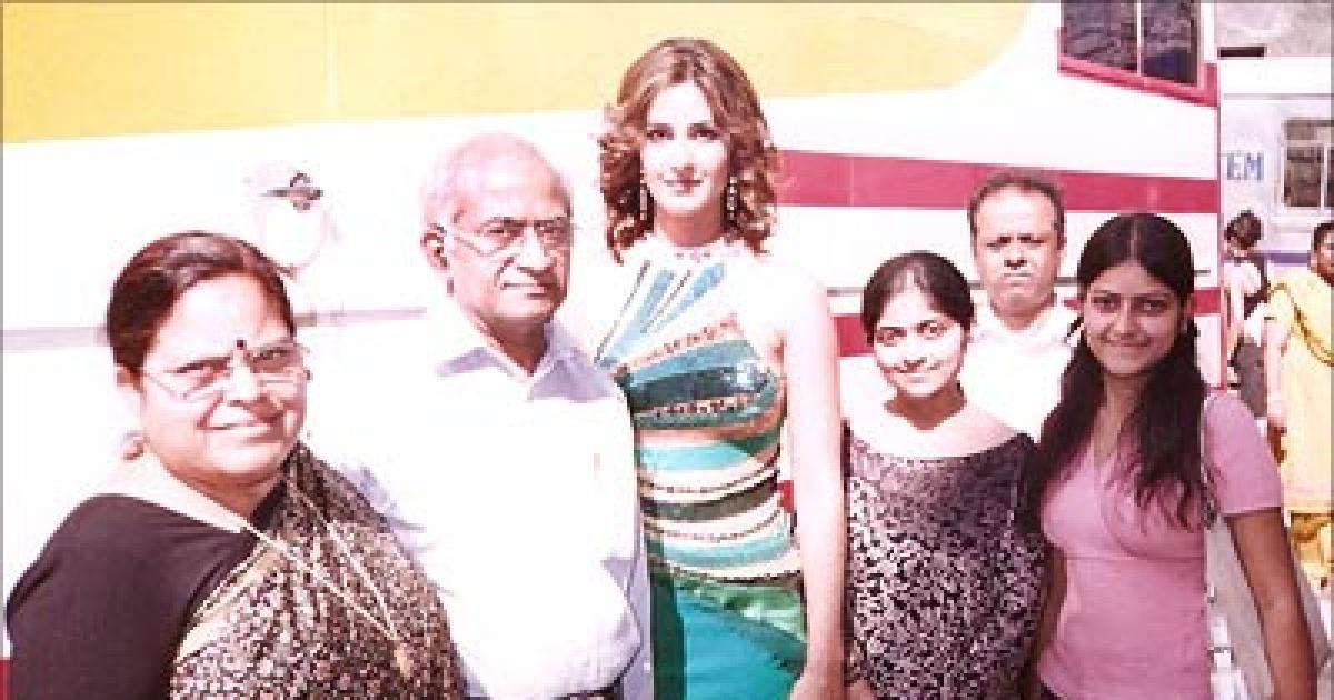 Reader PR sends us picture of his family with Katrina Kaif on the sets of her new film with Akshay Kumar, Singh is Kinng.
