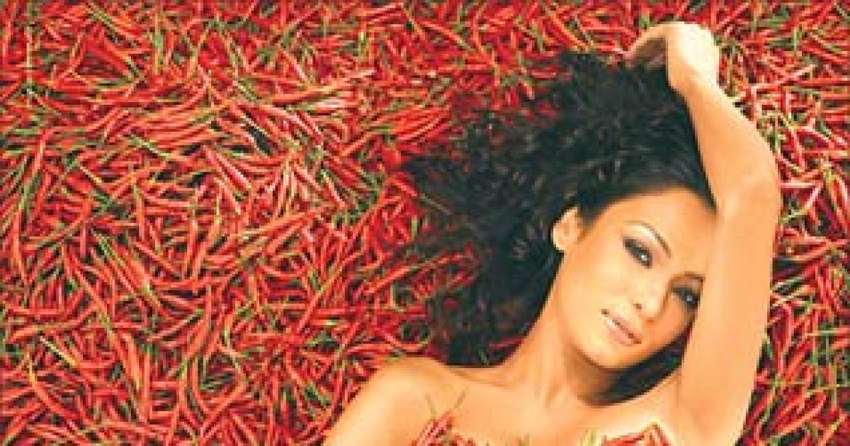Shamita Singha gives the words 'red hot' a whole new meaning as she lies on a bed of red chillies wearing nothing but a smile for petaDishoom, the youth division of People for the Ethical Treatment of Animals India (PETA).