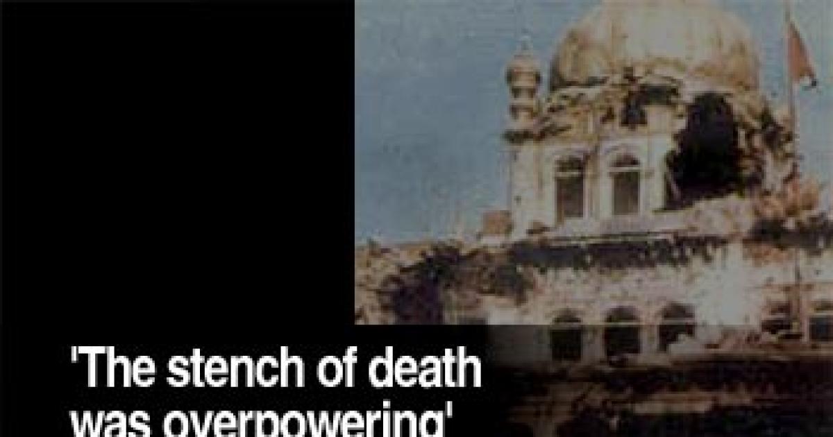 By the time Mrs Gandhi and President Zail Singh visited the temple complex it had been cleaned up thoroughly and not a trace of blood or flesh could be seen anywhere. But the stench of death was still overpowering and could bother you for days in case you managed to get some of it with the air that you breathed.