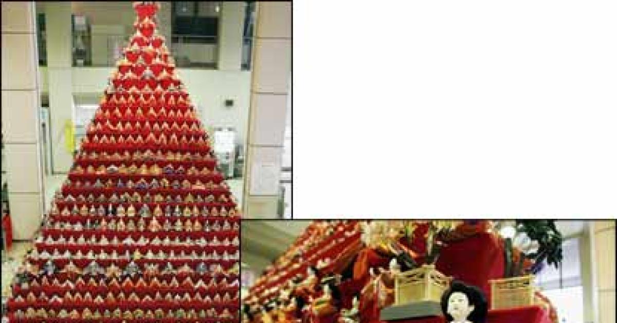 People, take a look at Japan's tallest pyramid of dolls at the city hall in Kounosu.