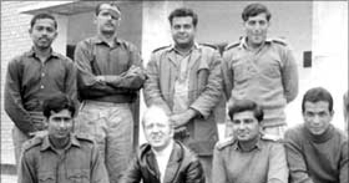 Image: Standing from left: Lieutenant A G J Sweetens, late Major S S Chaudhuri (with an eye patch) , Captain M F Dastoor, the author, Captain Anil Athale. Sitting: Lieutenant G R Chaudhari, a Red Cross official, Captain Mehrotra and Lieutenant Gurung at the Lyallpur Jail in Pakistan. This picture was sent by the Red Cross official seen here to Captain Athale's family.
