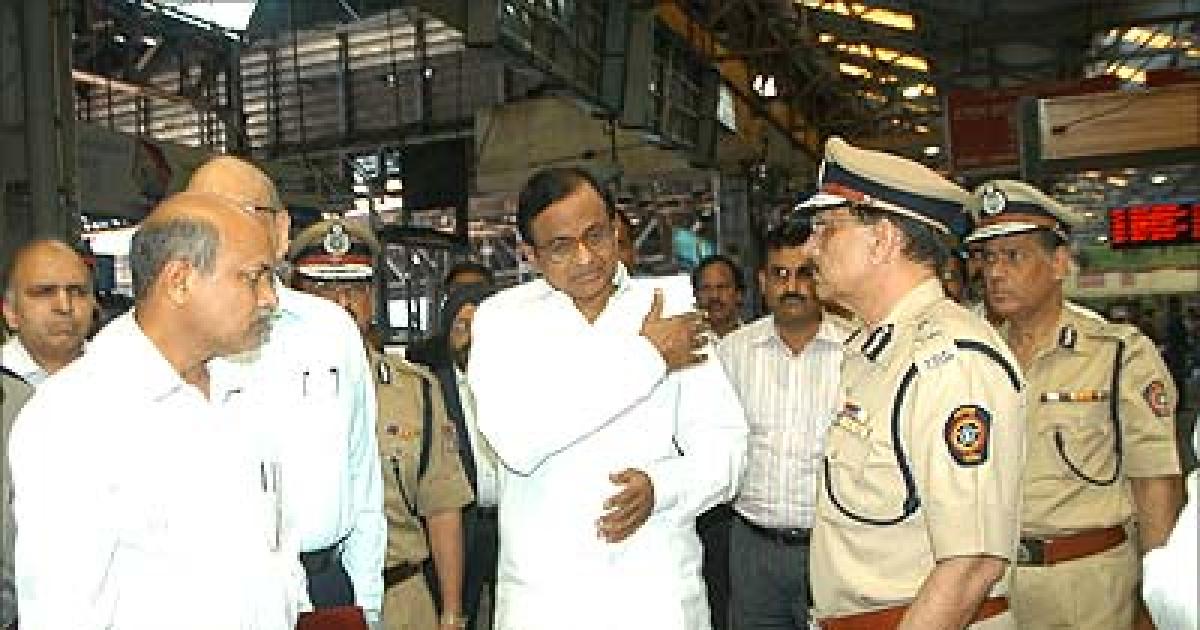 Image: Chidambaram at the CST Railway station in Mumbai.