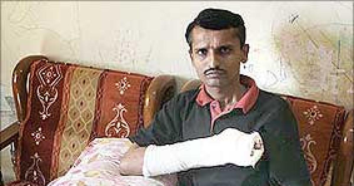 The doctors put a steel pin in my finger. My ring finger is broken. I took one bullet in my finger and another in my palm. A third bullet was lodged in my back.