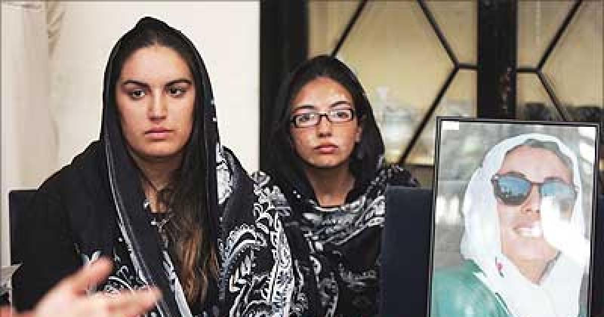 Image: Benazir Bhutto's daughters Bakhtawar (left) and Asifa at a Pakistan People's Party meeting at the Bhutto's residence in Naudero late last year. Photograph: Aamir Qureshi/AFP/Getty Images