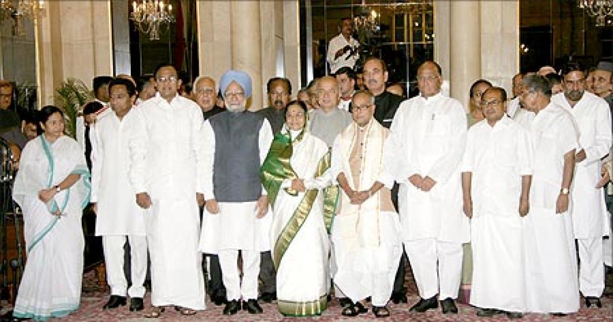 Image: President Pratibha Patil poses with Prime Minister Manmohan Singh and members of his cabinet after the swearing in ceremony