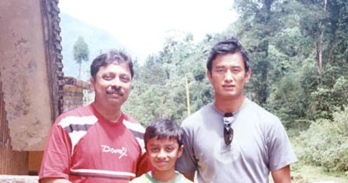 'Here is Indian football captain Baichung Bhutia. The photograph was taken during my tour to east India, Sikkim. My son Jay, who is a football freak, was very happy to be in the same frame with Bhutia,' writes Nitin.