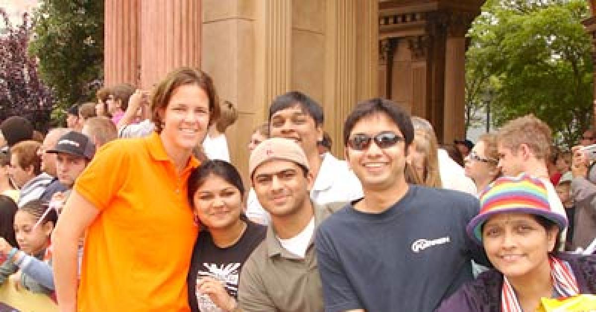 "This was in June 2005 while we were touring LA Disneyland. Lindsay Davenport (orange t-shirt) was there and she happily agreed for a picture. In the picture is Anirudh, Vipul, Nikunj and myself!" writes Ruchi.