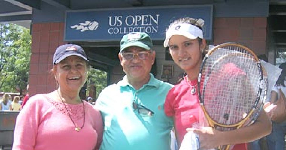 She (not in photograph) met India's tennis sensation Sania Mirza at the Flushing Meadows on September 4, 2006. Nandita's parents are seen in the picture along with Sania, who posed for the picture after losing her mixed doubles match.