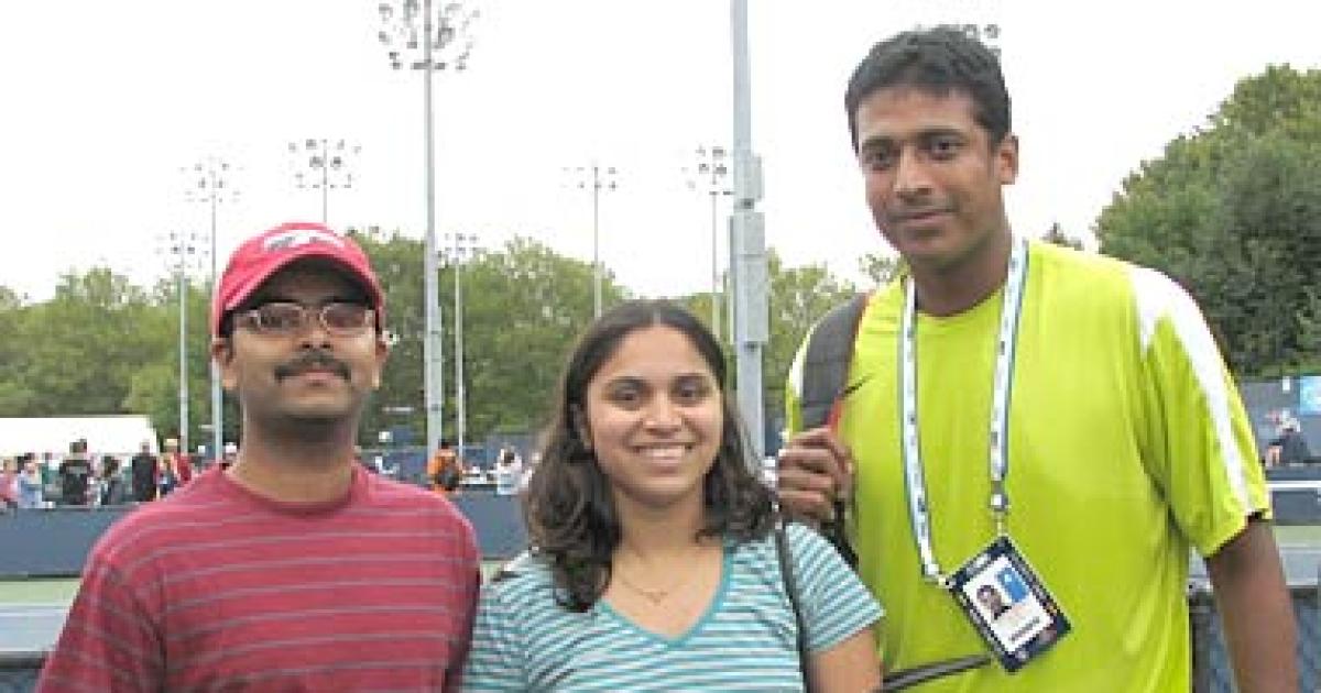 'We were watching Mahesh Bhupathi's practice and he generously obliged for a photo with us after the practice was over. We were thrilled to be standing next to our Tennis Legend and wished him Good Luck.'