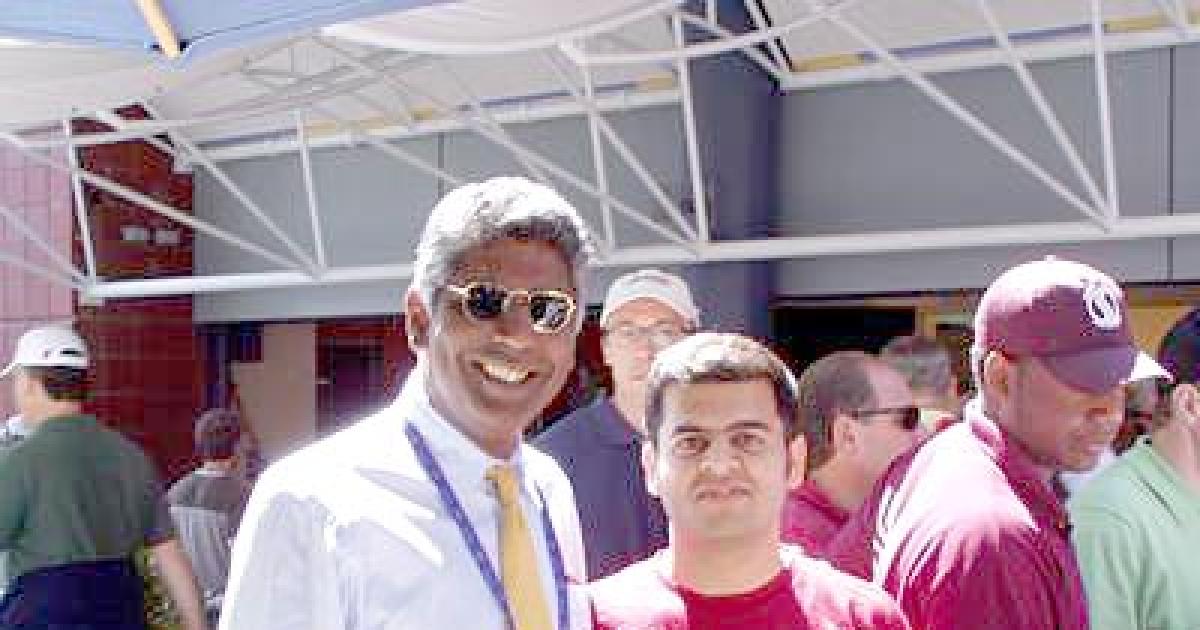 'I was there with my wife Meenal, cousin Sanjeev and his wife Aditi. Vijay Amritraj was having his desi lunch with his television crew. It was very nice of him to pose with me for a photograph with his trademark smile. This picture was clicked by Sanjeev,' writes Shreedhar.