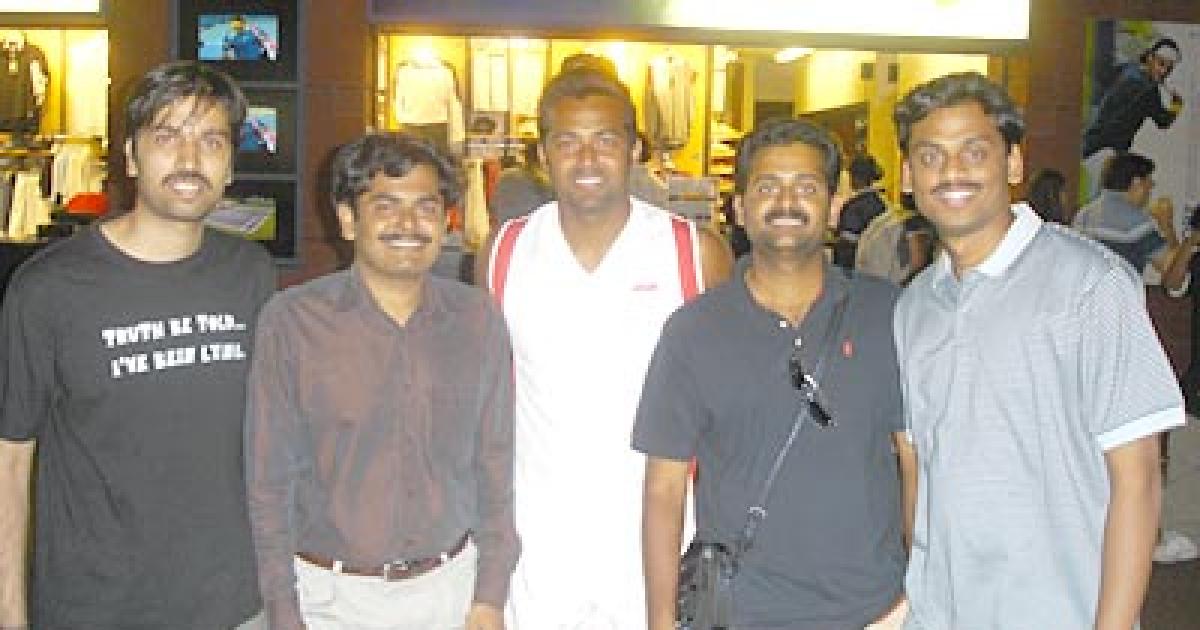 'This photo was taken with Leander Paes at the US Open. In the photo starting from the left -- me (Sairam), Sivakumar, Leander Paes, Prem Kumar and Jayakrishna,' writes Sairam.