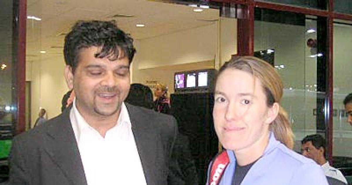 'It was a great opportunity to see Justine Henin (presently world no 2) at the Qatar Open. Here you can see Manu with her,' writes Anu.