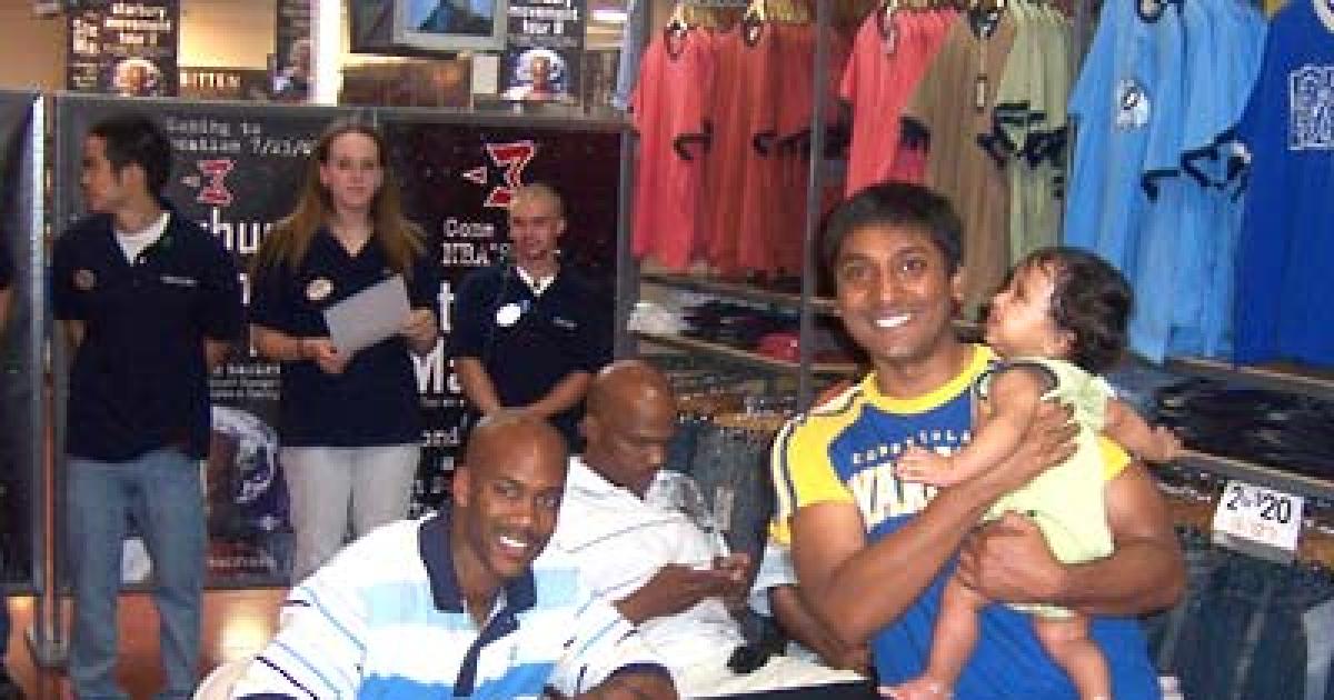 'We took this photograph when New York Knicks basketball player Stephan Marbury came to one of the stores to promote his clothing line. He was jovial & friendly with the baby (Abhinav). Nice experience indeed,' writes Nivas.