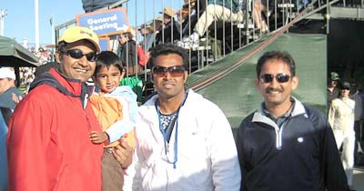 'This is the picture of my friend Jeevan and Saravan with Leander Peas at the Pacific Life Open, Indian Wells, CA on March 15th, 2008.