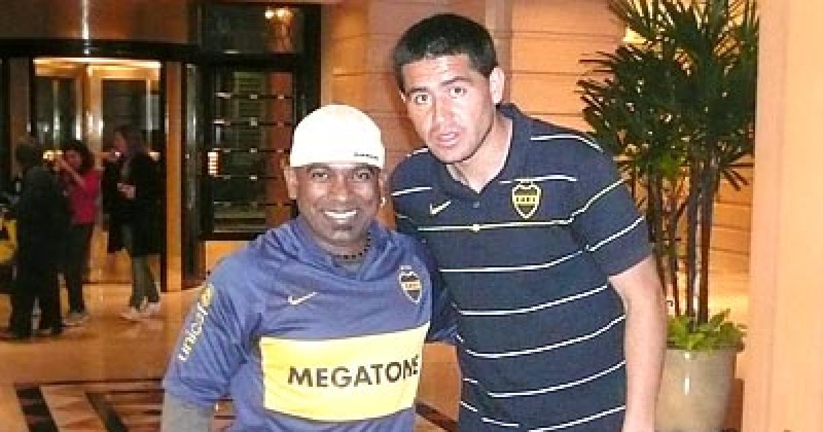'I am a football fanatic and this photo with Riquelme means a lot. He seems to be a humble guy and we had a decent chat even though my spanish is only rudimentary. I am going to go watch Boca play Estudiantes at the La Bombonera (Boca's home ground).'