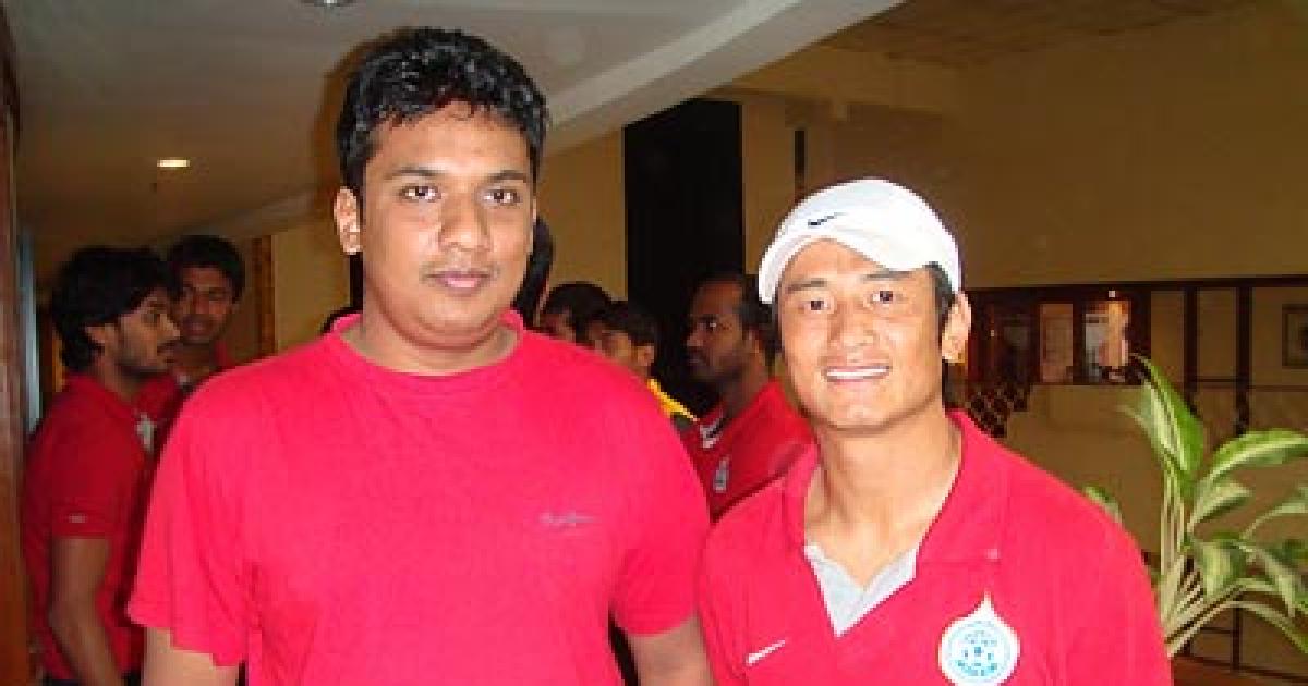 'During the AFC Cup in Hyderabad, I was staying at the Taj Deccan and bumped into Baichung Bhutia. He was very happy to take a photo with me,' writes Sameer.