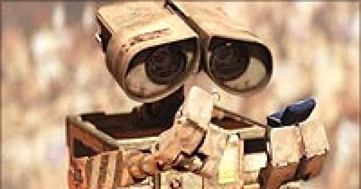 The film's protagonist is a tiny little trash compactor called Wall-E (Waste Allocator Load Lifter, Earth-class), a robot cleaning up the planet Earth long after it has been evacuated -- because mankind littered too much. As the centuries tick on, the scruffy little machine has developed a personality, whimsically sorting out his kinda junk from the rest of the trash, and aching for feelings, something he assesses based on Gene Kelly's corny 1969 musical Hello Dolly!, its tape being the only relic of humankind on an arid, garbage-filled landscape.