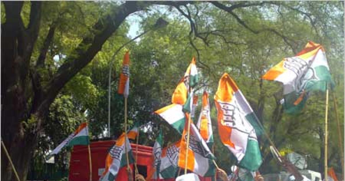 Image: Congress workers celebrate at the party headquarters in New Delhi.