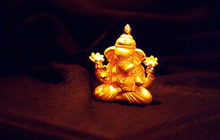 This 24 carat solid gold Ganesh, which sells for Rs 18,000, is a popular item this season at Bherumal Shamandas jewellers.